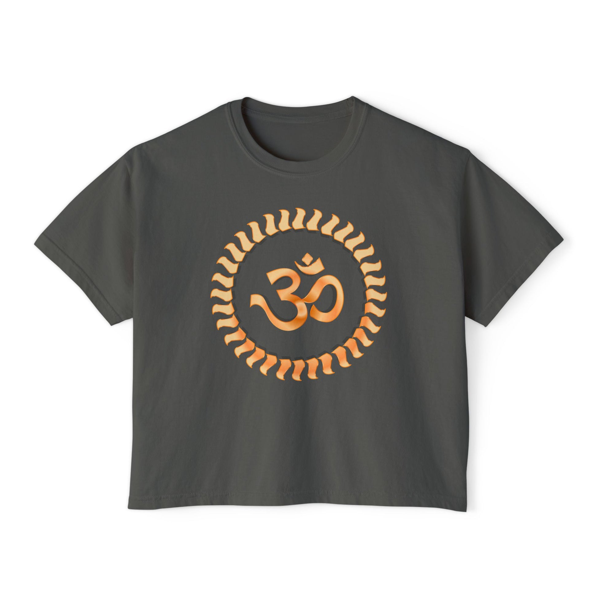 Stylish Women's Boxy Tee with Om Design - Perfect for Yoga Lovers, Casual Outfits, Gift Ideas, Meditation, Spirituality. This tee exudes a calming and spiritual vibe, making it ideal for those who appreciate yoga and meditation. It can be worn casually or as a thoughtful gift for a loved one interested in spirituality.